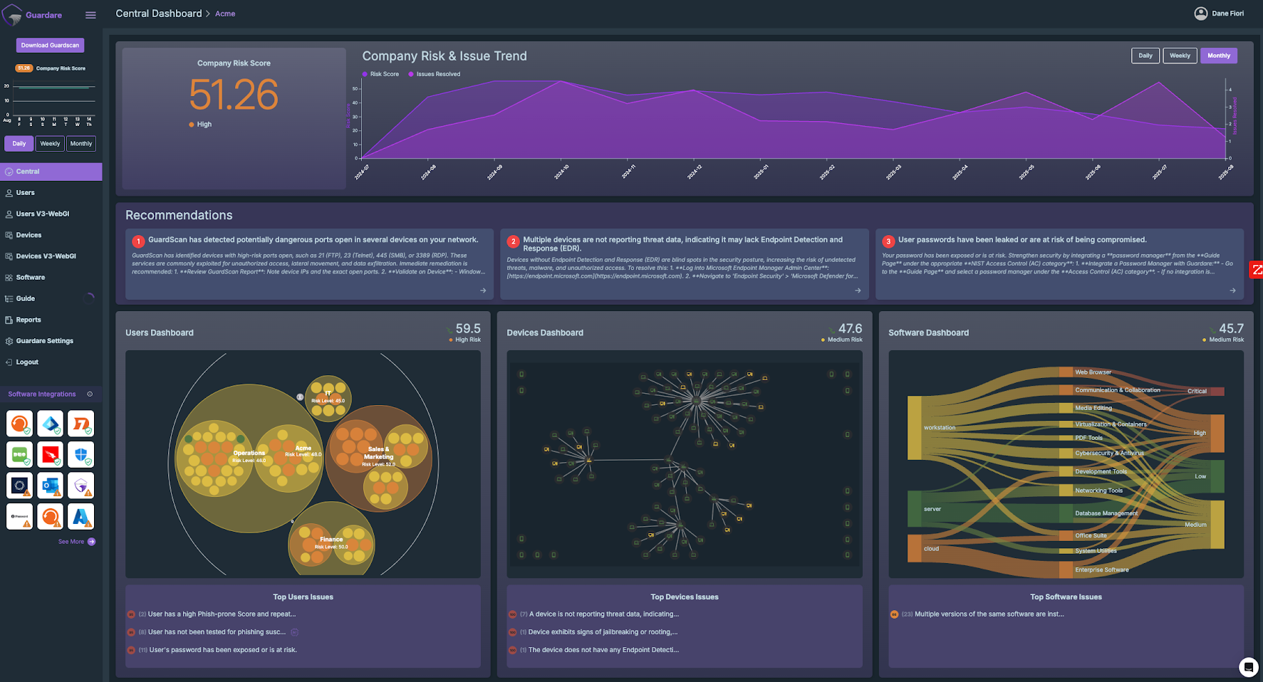 Natural language instructions tell you exactly what to do, in order of importance, to help lower risk. Whether it’s patching a device, tightening identity controls, or reconfiguring a firewall, Guardare helps teams act with confidence and reduce security risks faster.