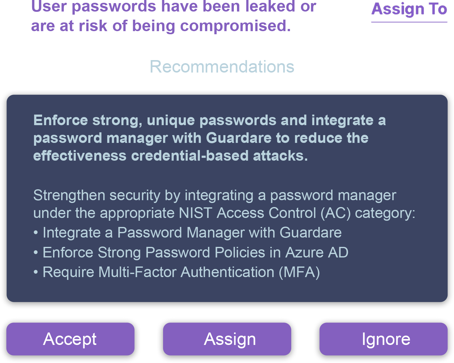 Natural language instructions tell you exactly what to do, in order of importance, to help lower risk. Whether it’s patching a device, tightening identity controls, or reconfiguring a firewall, Guardare helps teams act with confidence and reduce security risks faster.